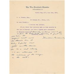 TLS, one page, 7.75 x 10.25, The Vice President's Chamber letterhead, June 3, 1901. Letter to F. G. Fincke, in full: "I inclose the letters...