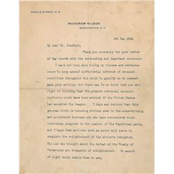 TLS, two pages on two adjoining sheets, 7 x 8.75, personal letterhead, May 22, 1922. Letter to William H. Crawford of New York. In full: "Thank...