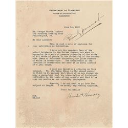 TLS, one page, 8 x 10.5, Department of Commerce, Office of the Secretary letterhead, June 24, 1922. Letter to George Horace Lorimer of the Saturday Ev