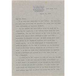 TLS, three pages, 7.25 x 10.25, personal letterhead, August 23, 1954. Letter to Texas Congressman Martin Dies, Jr., who had been the first chairman of