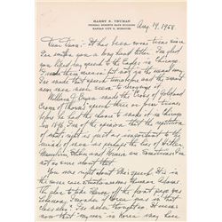ALS, two pages, 7.25 x 10.5, personal letterhead, August 19, 1958. Letter to his former secretary of state, Dean Acheson. In part: “I’m glad you liked