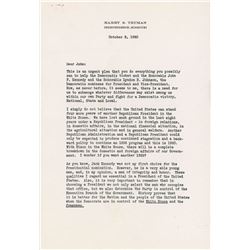TLS, two pages, 7.25 x 10.5, personal letterhead, October 5, 1960. Letter to Democratic Congressman John A. Blatnik of Minnesota, in full: "Thi...