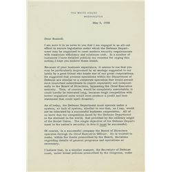 TLS as president, two pages, 7 x 10.25, White House letterhead, May 5, 1958. Letter to Russell B. Sterns of National Food Products, Inc., in part: &...
