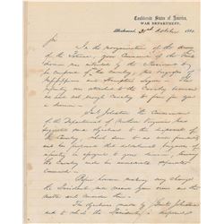 Civil War–dated ALS signed “J. P. Benjamin,” three pages on two adjoining sheets, 8 x 10, Confederate States of America, War Department letterhead, Oc