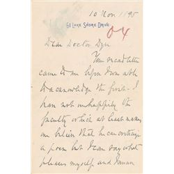 ALS signed “Robert T. Lincoln,” four pages on two adjoining sheets, 4.25 x 6.75, 60 Lake Shore Drive letterhead, November 10, 1895. Letter to Dr. Sidn