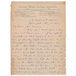 ALS, one page both sides, 8.25 x 11, National Woman Suffrage Association letterhead, May 10, 1882. Letter to Ms. Daney, in part: "Are you well ...