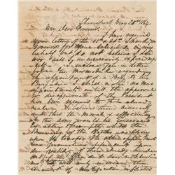 Civil War-dated ALS signed “E. Kirby Smith,” three pages on two adjoining sheets, 7.5 x 9.25, May 21, 1864. Written from Shreveport, a letter to Misso