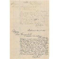 Civil War-dated ALS signed “Armstrong,” three pages on two adjoining sheets, 5 x 8, no date but circa summer 1863. Written from “Headquarters, 2nd Bri