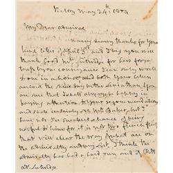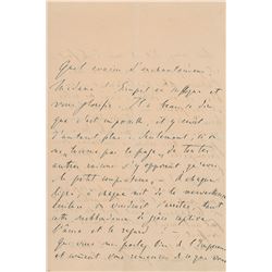 ALS in French, signed “F. L.,” three pages on two adjoining sheets, 5 x 7.5, April 26, [1866]. Letter to an unnamed recipient expressing his admiratio
