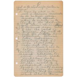Lengthy manuscript in pencil, 15 total pages, 5.5 x 8.5 and 6.5 x 9, January 28, 1949, consisting of an interview with Diego Rivera, who signs at the