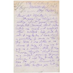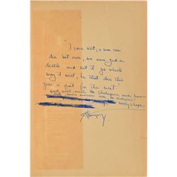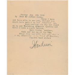 TLS signed “Houdini,” one page, 5.5 x 6.5, January 6, 1918. Letter to Alfred Becks, in full: "Sorry I have not been able to see you, thought yo...