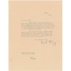 TLS signed “Scott Fitz,” one page, 8.5 x 11, August 16, 1940. Letter to his secretary, Mrs. Isabel W. Owens, in full: "Thanks ever so much for ...