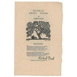 Scarce bi-fold pamphlet entitled "Several Short Poems," four pages, 5.75 x 9, signed on the front in black ink pen by Robert Frost. Printe...