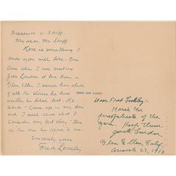 Unique pairing of items signed by Jack London, comprising a TLS and an inscribed galley proof for one of his short stories: