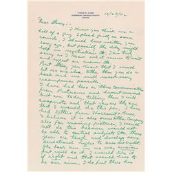 ALS signed “Ty,” five pages, 7.25 x 10.5, personal letterhead, October 28, 1952. Letter to his ghostwriter, Stoney McLinn, in part: “I know you think