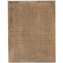DS, signed “E. Apperson,” one page, 17 x 27.75, July 1, 1864. Ornately engraved Confederate States of America bond in the amount of $1000, number 5120