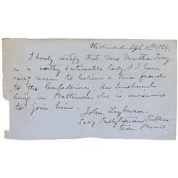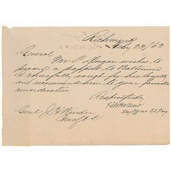 Chief engineer of the Confederate States Army (1818–1883). War-dated LS signed “J. F. Gilmer,” one page, 7.75 x 9.75, Confederate States of America, W