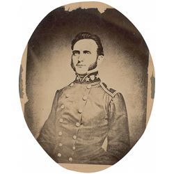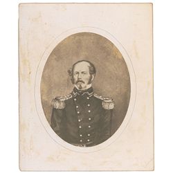 Large oval albumen photograph of Jackson, 7 x 9, reproducing a painting of the general in uniform. Affixed to its original thin cardboard backing, han