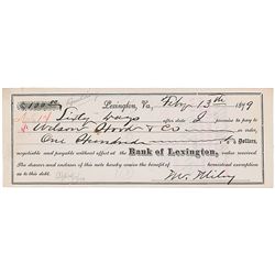 Virginian photographer (1841–1918) known for his portraits of Robert E. Lee. Two checks: bank check, 8.25 x 3.75, filled out in another hand and signe