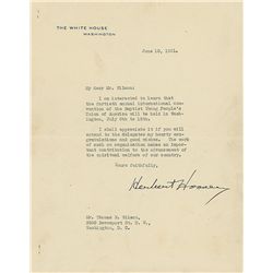 TLS as president, one page, 7 x 8.75, White House letterhead, June 10, 1931. Letter to Thomas R. Wilson. In full: “I am interested to learn that the f