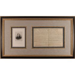 Partly-printed scalloped-top vellum DS signed by Madison as president, “James Madison,” and Monroe as secretary of state, “Jas. Monroe,” one page, 10.
