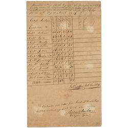 ADS, written by and then signed “Wm. Henry Harrison, Aid de Camp,” one page, 7.5 x 3.25, August 11, 1795. Document issuing rations reads, in full: “Th