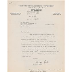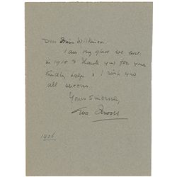 TLS signed “Orson,” one page, 6.25 x 8, no date. Letter to Lennie [Leonard Lyons]. In part: “I’m well enough, thank God. We have a house here in Londo