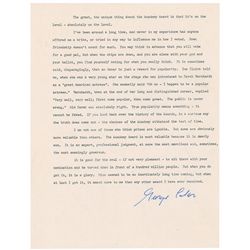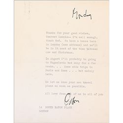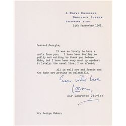 TLS signed “Larry,” one page, 5.5 x 7, personal letterhead, September 14, 1966. Letter to George Cukor. In part: “It was so lovely to have a cable fro