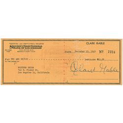Personal check, 8.25 x 3.25, filled out in type and signed by Gable, payable to Western Union for $2.58, December 15, 1949. Cancellation holes affecti