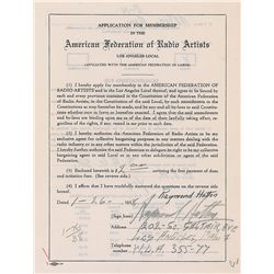 American actor (1887–1971) who appeared in almost five hundred movies. DS in pencil, one page both sides, 6.5 x 8.5, January 26, 1938. Application for