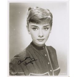 Stunning color glossy 8 x 10 close-up photo of Hepburn as she appeared in the classic film Breakfast at Tiffany’s, signed in black felt tip. In fine c