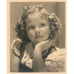 Vintage matte-finish 8 x 10 photo, signed and inscribed in fountain pen, as a child, “To Nancy Ann, Love, Shirley Temple.” Several dings to edges, mil
