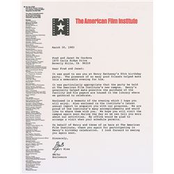 Scarce TLS signed “Bob,” one page, 8.5 x 11, American Film Institute letterhead, March 30, 1983. Letter to Frederick de Cordova and his wife. In part: