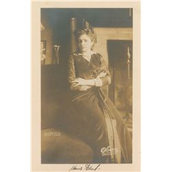 Stage actress (1872-1953) who achieved her greatest success as Peter Pan. Vintage matte-finish 3.25 x 5.5 Sarony photo, affixed to a 4 x 6 mount, sign