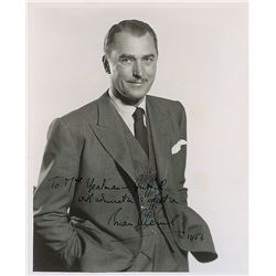 Vintage glossy 8 x 10 photo of Aherne in a three-piece suit, signed and inscribed in fountain pen “To Mr. Yeatman-Griffith, with admiration & af...