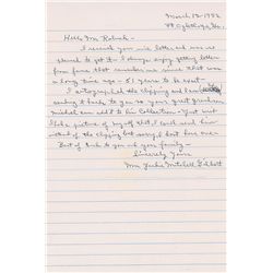ALS, one page, 8.25 x 11, no date. Letter to the daughter of fellow Hall of Famer Rabbit Maranville. In part: “Of course I knew your Dad very well but