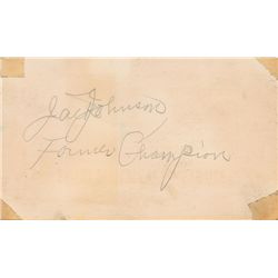 Scarce and desirable vintage pencil signature, “Jack Johnson, Former Champion,” on the reverse of a 5.5 x 3.25 automobile maintenance card. In very go
