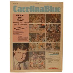 Adjoined front and back cover of the April 16, 1983, issue of Carolina Blue, 11.25 x 15, featuring two images of Jordan on the court for the Tarheels,