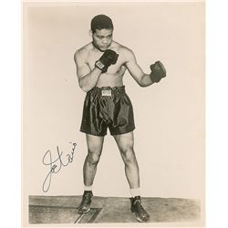 Glossy 8 x 10 full-length photo of Louis during training, signed in black felt tip. Scattered light creases and surface marks, otherwise fine conditio