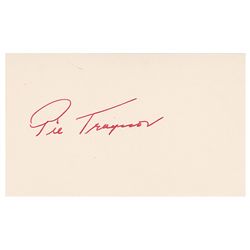 Superior third baseman and Hall of Famer (1899–1972). In-person ink signature, “Pie Traynor,” on an off-white 5 x 3 card. In fine condition.
