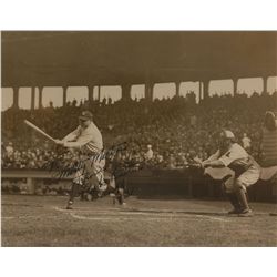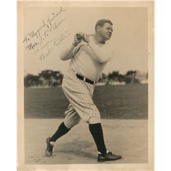 Highly desirable vintage matte-finish 8 x 10 full-length photo of Ruth posing at the end of one of his mighty swings, signed and inscribed in fountain
