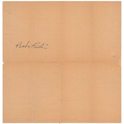 Vintage fountain pen signature, “Babe Ruth,” on the reverse of a blank 9 x 9.25 Railway Express Agency register of shipments form. Intersecting folds