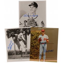Three 8 x 10 photos, two glossy and one satin-finish, each signed in blue felt tip by the Hall of Fame pitcher pictured: Steve Carlton, Lefty Gomez, a