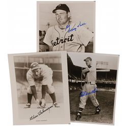 Three glossy 8 x 10 photos, each signed in blue or black felt tip by the Hall of Famer pictured: Eddie Mathews, George Kell, and Charles Gehringer (“C