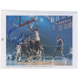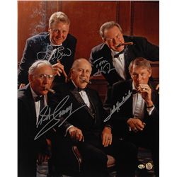 Color satin-finish 16 x 20 photo of Celtics icons Red Auerbach, Larry Bird, Bob Cousy, John Havlicek, and Tommy Heinson, all dressed in tuxedos and en