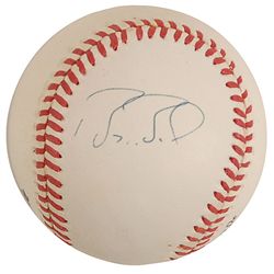 Official Rawlings National League baseball signed in blue ballpoint on the sweet spot. Some scattered light toning over signature, otherwise fine cond