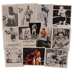 Fourteen photos of various finishes, ranging in size from 3.5 x 5 to 8.5 x 11, each signed in ink by the boxer pictured. Many are inscribed. Signers a