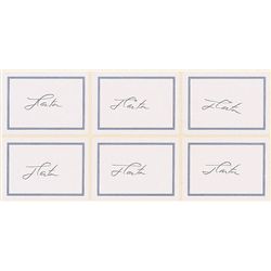 Six blue-bordered bookplates, all on one sheet, with each measuring 4 x 3, and each signed in black ballpoint, “J. Carter,” all on a 12.5 x 6.25 sheet