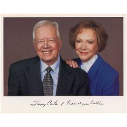 Color 10 x 8 cardstock photo of the Carters, signed in the lower border in black felt tip, “Jimmy Carter &” and “Rosalynn Carter.” In fine condi...