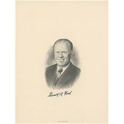Engraved portrait of Ford, 9 x 12, by the Bureau of Engraving and Printing, signed below the image in black felt tip, “Gerald R. Ford.” In fine condit